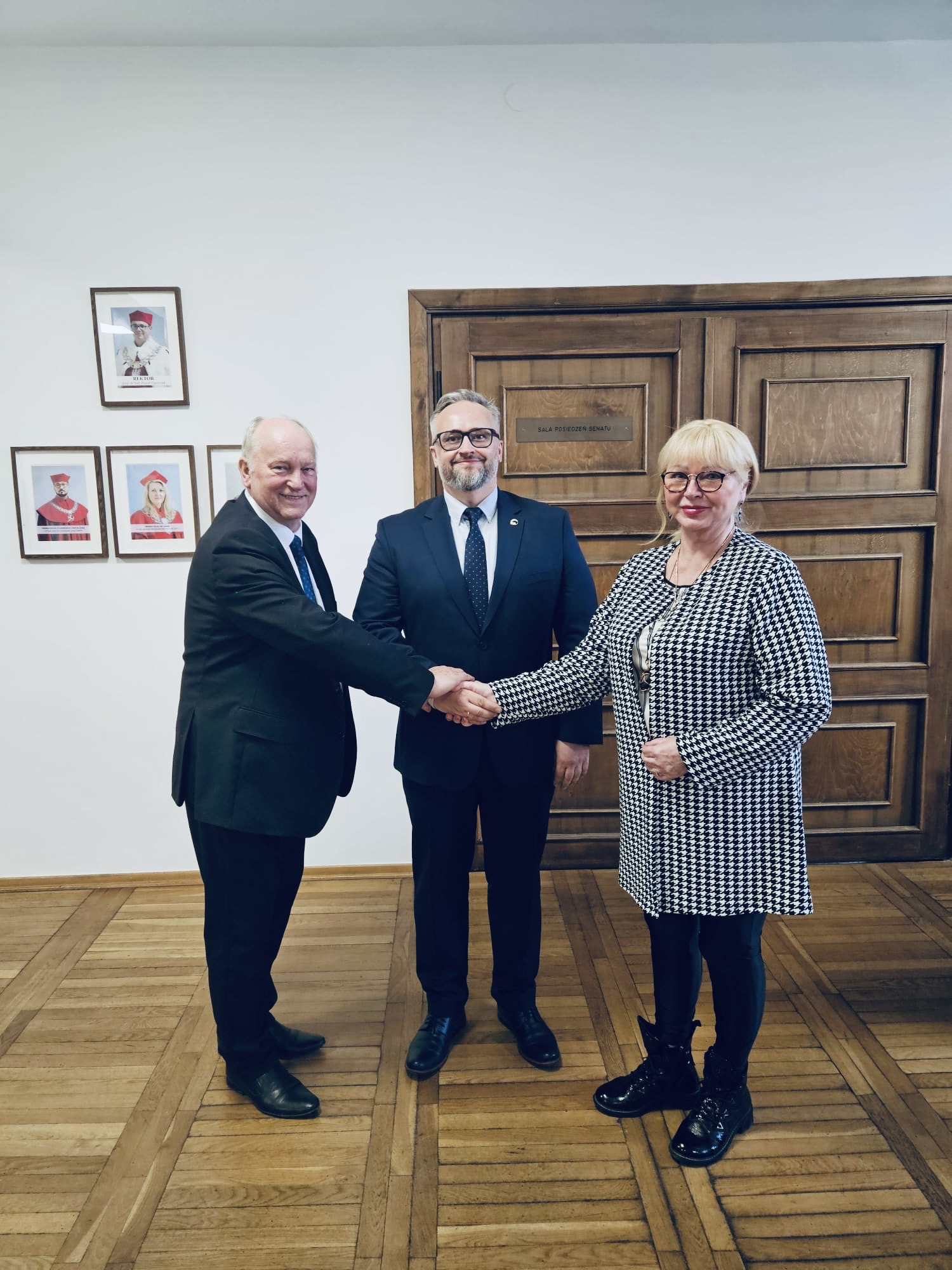 Dyrekcja szkoły świętuje obronę pracy doktorskiej zastępcy dyrektora i prezesa klubu AKS SMS